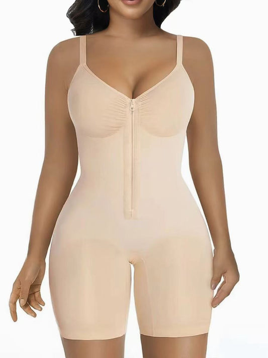 Women's High Elastic Zipper Adjustable Straps Breathable Mesh Design Tummy Control Body Shaper